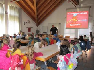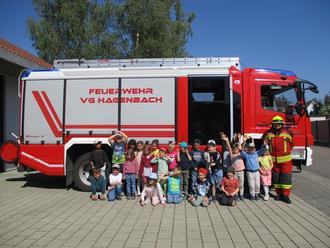 Die Vorschulkinder der Kita Regenbogen besuchten Mitte Mai die freiwillige Feuerwehr Hagenbach. Feuerwehrmann Nicola Aliberti erklärte den Kindern, was alles zu den Aufgaben der Feuerwehr gehört und wie man richtig einen Notruf absetzt.