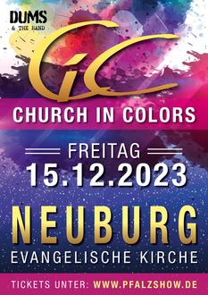 Am Freitag, dem 15. Dezember 2023 kommt es zu einem besonderen Konzertereignis in der protestantischen Kirche in Neuburg. Unter dem Tourneetitel „Church in Colors“ kommt der Ausnahmesänger Oli Dums mit seiner Band und vielen Highlights aus dem Pop und Rockbereich, sowie bewegenden Welthits erstmalig nach Neuburg zum Konzert in der Kirche. Die gefeierte Tournee „Church in Colors“ ist dafür bekannt, die Kirche mit modernster LED-Technik in ein beeindruckendes Farbenmeer zu tauchen. Gänsehautmomente und musikalische Extraklasse sind garantiert, wenn die Musiker Kai Rogowski (Schlagzeug), Philipp Graf (Gitarre), Daniel Zäpfel (Bass) und Marcus Rutz-Lewandowski (Piano) zusammen mit ihrem Sänger Oliver Dums zum Konzert laden. Vielen wird der Sänger, der mit dem Landesmusikehrenpreis ausgezeichnet wurde, noch als Stimme der legendären Formation Pepper mint Patty und vielen anderen bekannten Bands wie HOBO oder Orange4 in Erinnerung sein.