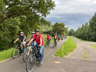 Am letzten STADTRADEL-Tag, 03.07.2023, fand die Abschlussfahrt der Scheibenhardter Radlerinnen und Radler statt. Allen voraus führte Ortsbürgermeister Edwin Diesel die große Gruppe in Richtung Lauterbourg an den Rhein an. Zur großen Überraschung trafen wir dort auf das Team Choralle aus Berg. Schnell war klar, dass es ab nun im „Doppel-Team“ mit den Bergern weitergeht. Auch hier stand Spaß und Heiterkeit an erster Stelle und so waren sich alle einig, dieses Treffen muss auf einem Foto festgehalten werden.