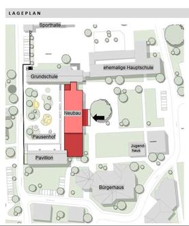 | • | die Errichtung eines neuen Schulgebäudes, das künftig das bestehende Pavillon- und Grundschulhauptgebäude verbinden wird sowie |