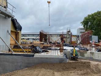 Nachdem die WC-Anlagen, Mensa und Mehrzweckhalle inkl. Kelleranlagen und Schulschwimmbad sowie die Pausenhalle und die Fahrradhalle abgebrochen waren, wurde mit den Arbeiten für den ersten Bauabschnitt im Februar dieses Jahres begonnen.