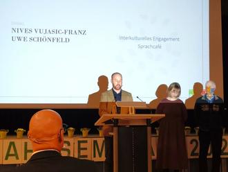 Stellvertretend für alle Teilnehmenden des Sprachcafés wurden beim Neujahrsempfang der Stadt Hagenbach Nives Vujasic-Franz und Uwe Schönfeld mit dem Preis für Soziales Engagement geehrt. Ohne Nives würde es das Sprachcafé gar nicht erst geben – nur ihrem Einsatz ist es zu verdanken, dass so viele Migranten Zugang zu unserer Sprache und Kultur erhalten. Uwe trägt maßgeblich dazu bei, das Sprachcafé am Leben zu erhalten. Er übernahm Verantwortung, als es nötig war und sorgt durch seinen Einsatz für Regelmäßigkeit und Verlässlichkeit! Vielen, vielen Dank euch beiden. Vielen Dank aber auch allen anderen Ehrenamtlern und Teilnehmenden – euer Einsatz und eure Freude sorgen für gelebte Integration. Wir freuen uns über viele weitere Teilnehmende, ob als Deutschsprechende oder Deutschlernende – kommt einfach einmal vorbei: Jeden Mittwoch von 16:00 Uhr bis 18:00 Uhr im Haus der Familie.