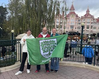 Im vergangenen Herbst war die Hagenbacher Hainbuchen-Fahne auch in Paris unterwegs. Familie Hecht nahm sie in den Herbstferien mit nach Disneyland Paris und machte anschließend gemeinsam die französische Hauptstadt „unsicher“. Keine Sorge: Mit dem spektakulären Louvre-Einbruch, der während des Aufenthalts passierte, hatte die Reisegruppe selbstverständlich nichts zu tun. Dafür aber mit vielen tollen Eindrücken einer faszinierenden Stadt, die man gerne noch einmal besucht. So hat die Hagenbacher Fahne auch in Paris wieder Flagge gezeigt.