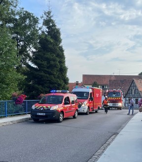 Die Feuerwehr aus Lauterbourg trifft ein.