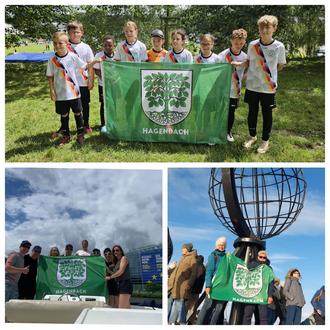 Die Hainbuchenfahne ist nach wie vor im Reisegepäck vieler Hagenbacher. Immer wieder erreichen uns Bilder. Alle Reisenden hatten eine schöne Zeit und schicken Grüße an alle Amtsblattleser. Die C-Jugend des Sportvereins war beim E-Jugend-Pfalzcup in Kaiserslautern. Die Fahne von Zuhause hing dort 3 Tage im Zeltcamp.
