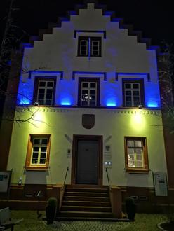 Das Alte Rathaus war bis Juli in den Farben der Ukraine beleuchtet. Mittlerweile werden alle öffentlichen Plätze und Gebäude aus Energiespargründen nicht mehr beleuchtet.