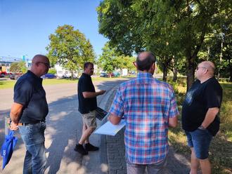In der vergangenen Woche waren Stadtbürgermeister Christian Hutter und der Beigeordnete Tobias Zimmermann gemeinsam mit Vertretern des LBM (Landesbetrieb Mobilität) und der Verbandsgemeindeverwaltung auf der L556, in den Bereichen Einmündung Grillhütte und Einkaufsmarkt, zu einer Begehung unterwegs. Hintergrund ist die laufende Ertüchtigung der Asphaltdecke der Landesstraße zwischen Hagenbach und Neuburg. Die Arbeiten des 4. und letzten Bauabschnittes, vom Bahnübergang bis zur Einmündung Industriegebiet, sollen im kommenden Jahr durchgeführt werden. In dem Zug möchte man versuchen zwei Fliegen mit einer Klappe zu schlagen und mögliche Verkehrsverbesserungen herbeiführen. Die Stadt hat beim LBM eine Überquerungshilfe (Fahrbahnteiler) zur besseren Erreichbarkeit, für Fußgänger und Radfahrer, der vorhanden Freizeitstätten und Vereinsheime rund um die Grillhütte beantragt. Für das Gelände ehemalige Hüttenhocker gibt es nach wie vor Überlegungen dort einen Bereich für jugendliche Freizeitaktivitäten (z.B. Beachvolleyball, Dirtpark) zu schaffen. Des Weiteren könnte nach Vorstellungen der Stadt ein Kurzzeitparkplatz für Lkw in Höhe des Einkaufsmarktes eingerichtet werden. Der Pflasterbelag hat sich durch parkenden Schwerlastverkehr enorm abgesenkt. Nach der Begehung könnte nun die Ermittlung der Machbarkeit und der Kosten im Stadtrat weiterverfolgt werden. Wir halten euch auf dem Laufenden.