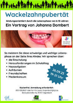 Vortrag von Johanna Dombert. Das Alter zwischen 5 und 10 Jahren kann für Eltern besonders herausfordernd sein. Johanna Dombert liefert Ansätze, wie bindungsorientierte Erziehung in dieser Zeit aussehen kann. Besprochen werden auch heikle Themen, wie Schule, Hausaufgaben, Freunde und Medienkonsum. Termin: Dienstag, dem 26. September 2023 von 19:00 Uhr – 21:00 Uhr im Haus der Familie, kostenfrei; bitte anmelden, begrenzte Teilnehmerzahl.
