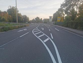 Im Stadtgebiet wurden im Jahr 2023 mehrere Straßenmarkierungen erneuert. Unter anderem die Abbiegespur auf der Ortsrandstraße Ost in Richtung Kieswerk