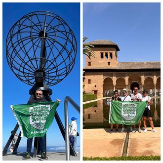 Die Hainbuchenfahne ist auch nach den Sommerferien im Hagenbacher Reisegepäck. Ulrich Löhle schickt Urlaubsgrüße aus dem hohen Norden vom Nordkap in Norwegen. Die Familien Schof und Kollofrath genossen die Zeit in Granada und grüßen von der Alhambra auf dem Sabikah-Hügel in Andalusien, Spanien. Wer kurzfristig eine Flagge benötigt oder Bilder senden möchte, darf sich gerne telefonisch oder per WhatsApp an 0176 966 09208 wenden. Beim nächsten Ludwigsmarkt am Freitag, dem 4. Oktober 2024 gibt es das Stück Stoff am Waffelstand der Kita St. Michael zu kaufen. Der Preis liegt bei 25 Euro. Zur Kerwe freuen wir uns über eine traditionelle Festbeflaggung am Anwesen.