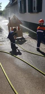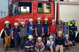 Beim Weinfest der Feuerwehr Scheibenhardt konnten die Bambinis das erste Mal ihre Löschqualitäten unter Beweis stellen. Neben einer Urkunde zur „Mitmachaktion“ gab es ebenfalls Feuerwehrtattoos und Aufkleber von unserem Feuerfuchs. Am letzten Donnerstag fand die erste Bambini-Stunde statt. Nach einer kurzen Kennenlernrunde wurden die Aufgaben der Feuerwehr „Retten, Löschen, Bergen, Schützen“ thematisiert und mit Hilfe von Beispielen den Kindern nähergebracht. Alle Kinder konnten ihr Vorwissen einbringen und waren mit Feuereifer dabei. Am Ende der Stunde durften die Bambinis noch das erste Mal die neuen Helme für ein gemeinsames Foto vor dem Feuerwehrauto aufsetzen. Wir möchten uns an dieser Stelle herzlich bei Yves Haas, BGV Versicherungen, für die Spende der Helme bedanken.