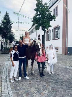 Schaurige, schöne, witzige und ritterliche Geschichten konnten die Familien vom TV Hagenbach, Abt. Handball, am 29.09.2023 bei einer Erlebnisführung durch Hagenbach erleben. Nicht wissend, was die Kinder und Erwachsenen erwartet, traf man sich am Königsbrückel, zu einer Führung durch Hagenbach. Nach der Begrüßung durch die Magd der Stadt Hagenbach führte der Nachtwächter die Gruppe zur ersten Station des Grenzjägers. Hier musste die Grenze von den Kindern neu gezogen werden. Weiter ging es zur zweiten Station, dem Pfahlklopfer und danach zur dritten Station, dem Trommler. Nachdem dieser auch dieses Mal falsch trommelte, wurden wir bei unserer Erlebnisführung von Rittern angegriffen und die Kinder mussten die Stadt Hagenbach verteidigen. Auf dem Weg durch die enge Stadtmauergasse schauderte es dem ein oder anderen schon. Am Wachthäusel angekommen wurden die Schurken (der Pfahlklopfer und der Trommler) in das ehemalige Gefängnis eingesperrt, um für ihre Missetaten zu büßen. Zu guter Letzt führte uns der Weg vorbei am ehemaligen Schloss zur Kirche, wo uns die Stadtmadam auf hohem Ross erschien. An der Kirche spielten die Kinder vom Akkordeon Verein Neuburg noch einige Lieder, unter anderem aus dem Mittelalter das Lied: Freude schöner Götterfunken. Der krönende Abschluss der Führung fand anschließend auf dem Reiterhof Apollon mit einem Mittelalter-Mahl statt. Ich möchte mich auf diesem Wege bei allen bedanken, die mir geholfen haben, die Aktion in die Tat umzusetzen. Im kommenden Jahr wird es erneut eine Führung für Familien über die Mythen und Sagen von Hagenbach geben.