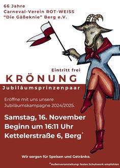 Es ist soweit, wir freuen uns sehr. Dieses Jahr feiert der CVB sein 6 x 11 Jubiläum. Der Auftakt zu dieser besonderen Kampagne findet am Samstag, dem 16. November 2024 um 16:11 Uhr in der Kettelerstraße statt. Alle Narren, Freunde und Gönner sind herzlich zu diesem Event eingeladen. Da es sich um eine Außenveranstaltung handelt, denkt bitte an entsprechende Kleidung. Für die Getränke bitte ein Glas bzw. Becher/Tasse mitbringen. Wir freuen uns sehr auf Euch.