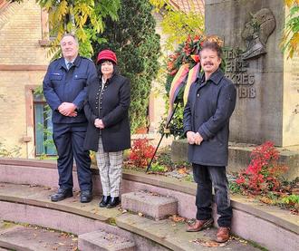 Liebe Bürger/innen, wir denken an die Opfer von Gewalt und Krieg, an Kinder, Frauen und Männer aller Völker. Gewalt und Krieg hinterlassen tiefe Spuren, die bleiben. Wir sind bei denen, die Gewalt und ihre Folgen erleiden und erlitten. Lass uns aus unserer Geschichte lernen, damit die Welt friedlicher wird.