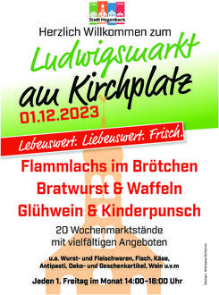 Der nächste Ludwigsmarkt findet am Freitag, dem 01. Dezember 2023 von 14:00 Uhr – 18:00 Uhr statt. Rund um den Kirchplatz reihen sich wieder, wie jeden 1. Freitag im Monat, etwa 20 Wochenmarktstände aneinander.