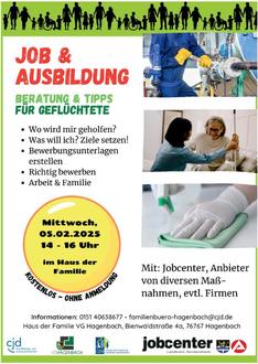 Casjen Klosterhuis, Tel. 0151 / 40638677, Kaja Crocoll, Tel. 0151 / 40638637 oder familienbuero-hagenbach@cjd.de, Haus der Familie, Bienwaldstraße 4a, 76767 Hagenbach.