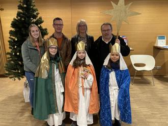 Am Montag, den 2. Januar besuchten uns die Heiligen Drei Könige im Rathaus. Sie sangen ihr Lied und segneten unser Haus im Beisein einiger unserer Mitarbeiterinnen und Mitarbeiter. Bevor sie sich wieder auf den Weg machten, überreichte ihnen Bürgermeisterin Hedi Braun zum Dank einen Scheck und Süßigkeiten. In diesem Jahr steht der Kinderschutz im Fokus der Sternsinger-Aktion. Unter dem Motto „Kinder stärken, Kinder schützen - in Indonesien und weltweit“ werden mit dem gesammelten Geld der Sternsinger Projekt zur Gewaltprävention umgesetzt.