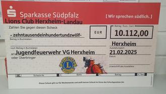 Große Freude bei den Jugendfeuerwehren der Verbandsgemeinde! In der vergangenen Woche fand im Feuerwehrhaus Herxheim die feierliche Übergabe einer Spende des LIONS-CLUB Herxheim statt. Überreicht wurde der beeindruckende Betrag von 10.112 Euro, der aus dem Erlös eines Benefizkonzerts mit Oli Dums im vergangenen Sommer bei der Firma Hetzler stammt.