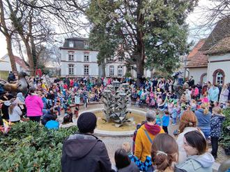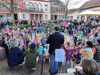 Unter blauem Himmel machten sich am vergangenen Montag die Kinder und Fachkräfte der Kita St. Josef mit ihren geschmückten Frühlingsstäben gemeinsam auf den Weg zum Herxheimer Dorbrunnen. Dort versammelten sich schon die Eltern und Familien der Kinder, um den Brunnen feierlich zu eröffnen. Mit Frühlingsliedern und einer kleinen Aufführung wünschten sich die Kinder den Frühling herbei und ein Junge aus der Kita durfte gemeinsam mit Ortsbürgermeister Sven Koch den Brunnen in Betrieb nehmen. Voller Stolz und mit Brezel in der Hand machten sich die Kinder auf den Heimweg.