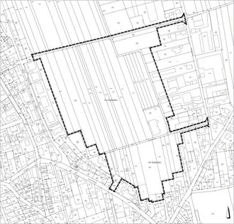 Die Grenzen des Geltungsbereiches des Bebauungsplan-Entwurfes sowie die in den Planbereich einbezogenen Grundstücke sind in dem nachstehenden Lageplan durch eine schwarze gestrichelte Linie kenntlich gemacht. Die Gesamtgröße des Gebietes beträgt ca. 8,4 ha.