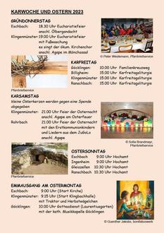 Rohrbach 21.00 Uhr Feier der Osternacht mit den Kommunionkindern und Liedern aus dem JuGoLo anschl. Agape