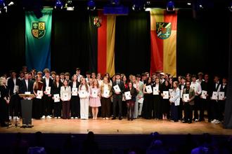 Am Mittwoch, 25.03.2026 wurden in der Festhalle in Herxheim 29 Abiturientinnen und 33 Abiturienten die Zeugnisse der Allgemeinen Hochschulreife überreicht. In diesem Abiturjahrgang des Herxheimer Gymnasiums wurden 24 Abiture mit einem Schnitt besser als 2 abgeschlossen, dabei wurde einmal die Note 1,0 erreicht.