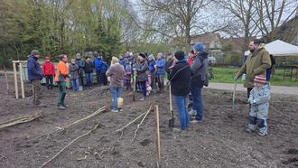 Bereits im Vorfeld waren mehr als 50 Bürgerinnen und Bürger dem Aufruf der Gemeinde gefolgt und hatten eine Baumpatenschaft übernommen. Am Aktionstag selbst wurden insgesamt 38 Obstbäume - überwiegend alte Sorten - sowie 56 Laubbäume, darunter Stieleichen, Hainbuchen, Vogelkirschen und Linden, gepflanzt.