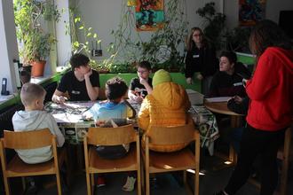 Montags haben wir uns kennengelernt, lustige und spannende Spiele gespielt und die Kinder konnten sich gegenseitig in Kartenspielen, Billard, Tischkicker und anderen spannenden Brettspielen miteinander messen. Die Kinder wurden mit Trinken versorgt, doch leckeres Essen haben sie selber mitgebracht. Um 13:00 Uhr fand ein Bastelworkshop statt, bei dem man verrückte und bunte Osterhasen gestalten konnte, wie man wollte. Die, die aber nicht basteln gehen wollten, sind mit ein paar Betreuern in die Turnhalle gegangen und haben sich bei unserem intensiven Merkballturnier ausgetobt, während die anderen, die in der Turnhalle waren, verrückte Tricks auf dem Trampolin machten.