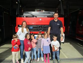 Bedanken möchten sich die Kinder bei der Feuerwehr Herxheim und besonders bei Alexander Renner.
