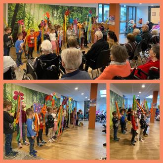 Das musikalische Repertoire reichte von fröhlichen Kinderliedern wie „Wenn es Frühling wird im Hasenland“ und „Wann fängt der Frühling an“ bis hin zu dem berührenden Lied „Lieber Gott, schick uns deine Engel“, das für viele Anwesende ein besonders emotionaler Moment war. Auch weitere frühlingshafte Melodien wurden mit Begeisterung und kindlicher Freude vorgetragen. Die Senioren und Seniorinnen waren sichtlich gerührt und spendeten nach jedem Lied herzlichen Applaus. Manche summten leise mit, andere klatschten im Takt - die musikalische Darbietung zauberte vielen ein Lächeln ins Gesicht und sorgte für eine Atmosphäre voller Wärme und gegenseitiger Wertschätzung. Die Begegnung endete mit einem kleinen gemeinsamen Abschluss, bei dem die Kinder ihre Lätarestecken an einige der Heimbewohner überreichten - als farbenfrohes Zeichen der Verbundenheit zwischen Jung und Alt. Solche Momente zeigen auf wunderbare Weise, wie generationsübergreifende Aktionen das Gemeinschaftsgefühl stärken können und wie wichtig es ist, Brücken zwischen den Lebenswelten zu bauen.