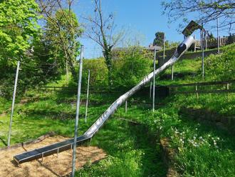 Nach Ertüchtigung des baulichen Gesamtzustands des Rutschenturms und der Vergrößerung des Fallschutzbereichs im Auslauf der Rutsche konnte die Attraktion des Abenteuerspielplatzes Ave Maria rechtzeitig zum Beginn der Spielplatzsaison wieder zur Nutzung freigegeben werden.