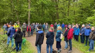 Zur Waldbegehung hatte die Ortsgemeinde Herxheim gemeinsam mit Revierförster Philipp Richter eingeladen. Etwa 60 Bürgerinnen und Bürger waren der Einladung gefolgt, um sich über aktuelle Waldthemen wie Klimawandel, Klimaresilienz und Biodiversität in heimischen Wäldern zu informieren.