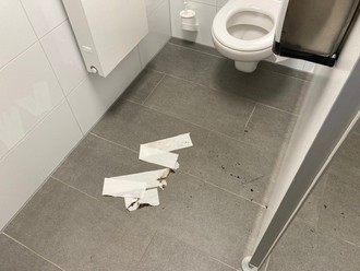 Nicht nur sind die WC-Kabinen stark verunreinigt, auch Vandalismus macht die Schließung notwendig.