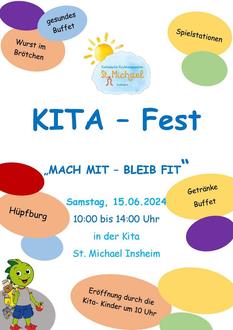 Wir möchten Sie herzlich zu unserem Kindergartenfest 2024 am 15.06.2024 von 10-14 Uhr einladen. Wir freuen uns, sie bei unserem diesjährigen Kitafest unter dem Motto „Mach mit – bleib fit“ willkommen heißen zu dürfen.