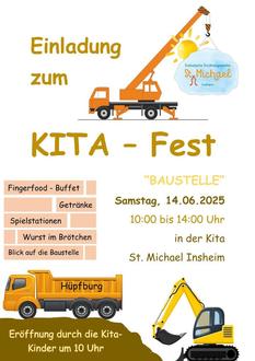 Am Samstag, den 14.06.2025, feiern wir unser diesjähriges Kitafest – und laden alle herzlich dazu ein, gemeinsam mit uns einen schönen Tag zu verbringen. Es erwartet Sie ein buntes Fest mit vielen Aktionen und der Möglichkeit, einen Blick auf unsere Neubau - Baustelle zu werfen.
