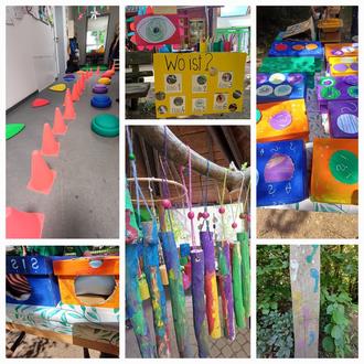 An verschiedenen Stationen konnten die Kinder mit ihren Familien zum Thema Hören, Sehen, Fühlen, Schmecken und Riechen unterschiedliche Angebote wahrnehmen. Darüber hinaus bot ein Parcours die Gelegenheit, das Gleichgewicht zu schulen.