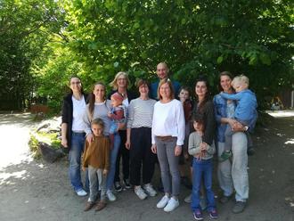 Die Jubilarin Kerstin Bullinger (Mitte vorne) wird von den Anwesenden zum Dienstjubiläum beglückwünscht.