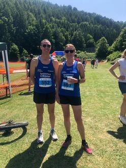 Markus startete um 15:00 Uhr über die 10 km-Strecke mit mehr als 500 Höhenmetern. Nach einer kleinen Runde von 2,2 km ging es für die Läuferinnen und Läufer auf die große Runde mit einer Bergwertung bei km 7,2 über 800 Meter. Auch hier ging es darum, sich das Rennen und damit auch die Höhenmeter sehr gut einzuteilen. Eine weitere Herausforderung waren ebenfalls die sehr steilen Abstiege. Markus benötigte für die 10 km 1:04:55 min und war im Gesamteinlauf 41. von 163 Teilnehmerinnen und Teilnehmern. Beiden war die Anstrengung nach dem jeweiligen Zieleinlauf deutlich ins Gesicht geschrieben. Doch wieder einmal haben sie ihre Grenzen verschoben. Herzlichen Glückwunsch zu dieser Leistung.