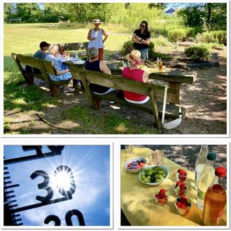 Bei sehr heißen Sommertemperaturen mit über 30 Grad haben sich 6 Sonnen-Frauen am Samstagnachmittag, dem 28. Juni am Haus der Begegnung getroffen und spazierten gemeinsam am Klingbach entlang zum Platz der Artenvielfalt. An dem idyllischen Rastplatz unter schattigen Bäumen erwartete die Frauen ein liebevoll gedeckter Tisch mit kühlen Getränken, frisches Obst und Waffeln. Zwischen Blühflächen und Staudenbeeten erfrischte man sich an den willkommenen Leckereien, die ein „Heinzelmann“ bereitgestellt hatte. Nach einer Verweildauer, bei netten Gesprächen und so manch lustiger Anekdote, machten sich die Sonnen-Frauen den Panzergraben entlang wieder auf den Rückweg zum Haus der Begegnung. Trotz der Hitze war man sich einig, dass der Sommerspaziergang eine gute Gelegenheit war, um in entspannter Atmosphäre miteinander ins Gespräch zu kommen und sich kennenzulernen. Bei der nächsten Veranstaltung im September beim Waldbaden, möchten alle gerne wieder dabei sein. Der Sommerspaziergang wurde in Kooperation von den Gleichstellungsstellen der Verbandsgemeinde Herxheim (Stephanie Heikamp) und der Ortsgemeinde Herxheim (BGO Karin Roth) organisiert und durchgeführt.