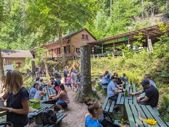 Nahezu 200 Kinder und Erwachsene haben die Einladung zum diesjährigen Kita Fest angenommen. Dieses fand erstmals mitten im Pfälzerwald an und in der Nellohütte zwischen Modenbachtal und Edenkobener Tal statt. Zwei verschiedene Wege mussten zu Fuß zurückgelegt werden, um die idyllisch gelegene Hütte zu erreichen.