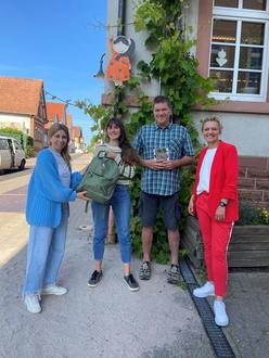 Tanja Treiling, Marktdirektorin der Sparkasse Südpfalz und Ortsbürgermeisterin von Insheim, überreichte gemeinsam mit dem NVS den ersten Rucksack an unsere Einrichtungen.