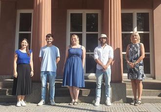 v.l. Personalleiterin Louisa Böcherer, Niklas Flick, Jacqueline Kern, Lukas Ring, Bürgermeisterin Hedi Braun