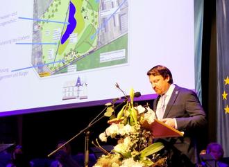Vorsitzender Danny Baudy berichtet über die Städtepartnerschaft.