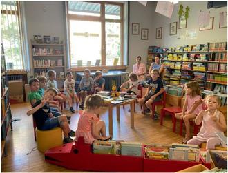 Im Anschluss erkundeten sie auf eigene Faust die beiden Ebenen der Bücherei und durften sich danach je ein Buch ausleihen, das den „schlauen Giraffen“ bis zu Beginn der Sommerferien in der Kita zur Verfügung stehen wird.