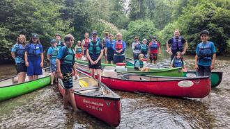 Alle 22 schliefen in Zelten und einer großen Blockhütte im Wald; gegessen wurde an einer Feuerstelle mit Bar und Überdachung im Freien. Wir konnten im glasklaren Gewässer spielen und schwimmen. Schlichtweg genial. Wir grillten, machten unsere eigenen Burger, spielten tagelang an jedem Morgen und abends bis tief in die Nacht – ganz ohne Handy. Danke an die Betreuer Swen Riebel, Johannes Sander, Alexandra Laag und Saskia Montillon, die neben ihren Autos auch allesamt ein Kanu steuerten. Dazu gab es ein Kinderboot mit Steuermann Leonard. Gut 20 Kilometer durch Wälder, Ortschaften und Landschaften.