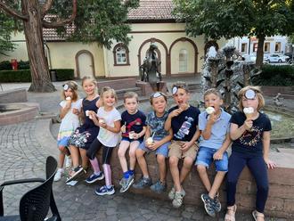 Gemeinsam haben sie die Schatzsuche gemeistert und siehe da, am Pfarrheim hat sich tatsächlich eine Schatzkiste mit Eisgutscheinen und Smarties versteckt. Jedes Kind durfte sich somit eine große Kugel Eis am Brunnen aussuchen.