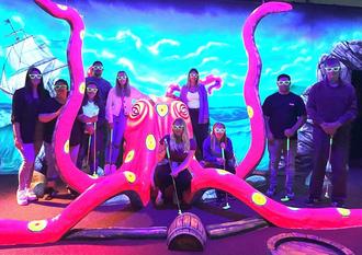 In einer bunten Unterwasserwelt schwangen wir in zwei Gruppen den Schläger. Ausgestattet mit quietschgrünen Brillen sah man nicht nur schräg aus, sondern auch gefühlt schräg auf die Bahn, sodass mancher Ball sich doch für das falsche Gleis entschied. Es wurde viel gelacht, wenn man nicht gerade konzentriert darauf war, den eigensinnigen Ball einzulochen.