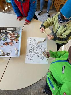 Im praktischen Teil stellten die Kinder Dinosaurierabdrücke aus Salzteig her. Sie gruben Dinosaurierknochen aus und setzen sie anschließend zusammen wie echte Paläontologen.