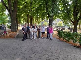 Zu Fuß ging es dann, vorbei an der „Grünen Lunge Insheims“ (Gartengrundstücke am Quodbach) zum Zeppelinbrunnen. Dort wird nach Aussage von Stefan Darsch der Brunnen reaktiviert werden, so dass wieder Wasser am ehemaligen Wäschplatz fließen wird. Anschließend brachte uns ein Bus der Firma Lösch an verschiedene Plätze in Insheim, wie z.B. den Schießplatz, wo gerade ein Fledermausbiotop entsteht und so gut wie einzugsbereit ist. Hans-Jürgen Lutz erklärte fachmännisch, was an Arbeiten am Fledermausbiotop angefallen war und gab sein Wissen über die eh-Da Flächen in Insheim an die Jury-Mitglieder, die interessiert zuhörten, weiter. Vorbei an weiteren Vorzeigeobjekten wie dem DGH, dem davor befindlichen Parkplatz und dem Friedhof ging es zurück ins Rathaus, wo die Abschlussbesprechung stattfand.
