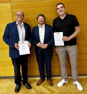 Ein besonderer Moment der Sitzung war die Ehrung von Tobias Herzenstiel und Hans Müller für ihr jahrzehntelanges Engagement in den kommunalen Gremien. Herzenstiel wurde für 20 Jahre, Müller für beeindruckende 29 Jahre kommunalpolitischer Arbeit ausgezeichnet. Beide erhielten eine Urkunde des Gemeinde- und Städtebundes, die ihr langjähriges Engagement und ihren Einsatz für die Gemeinde Herxheim würdigte.